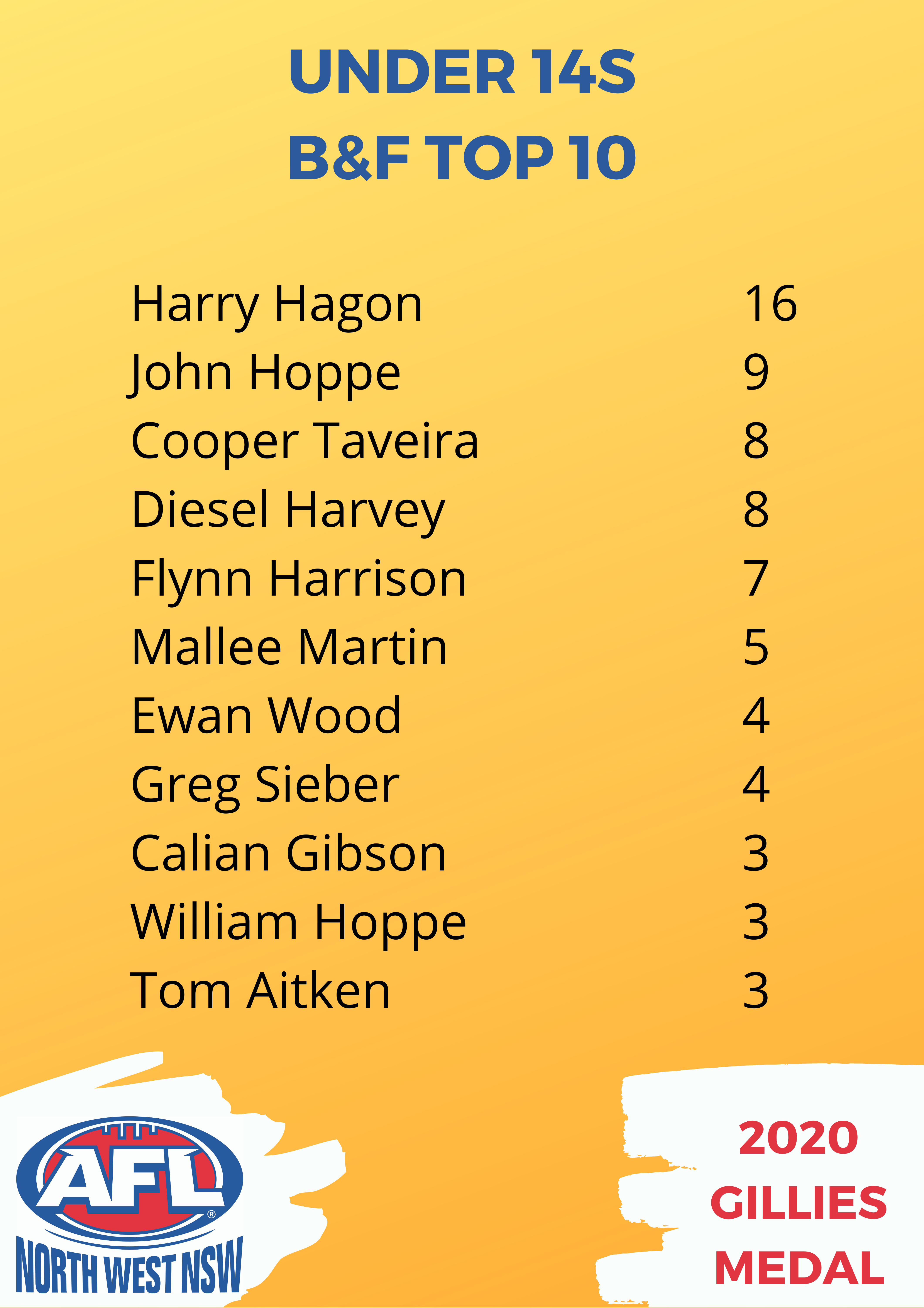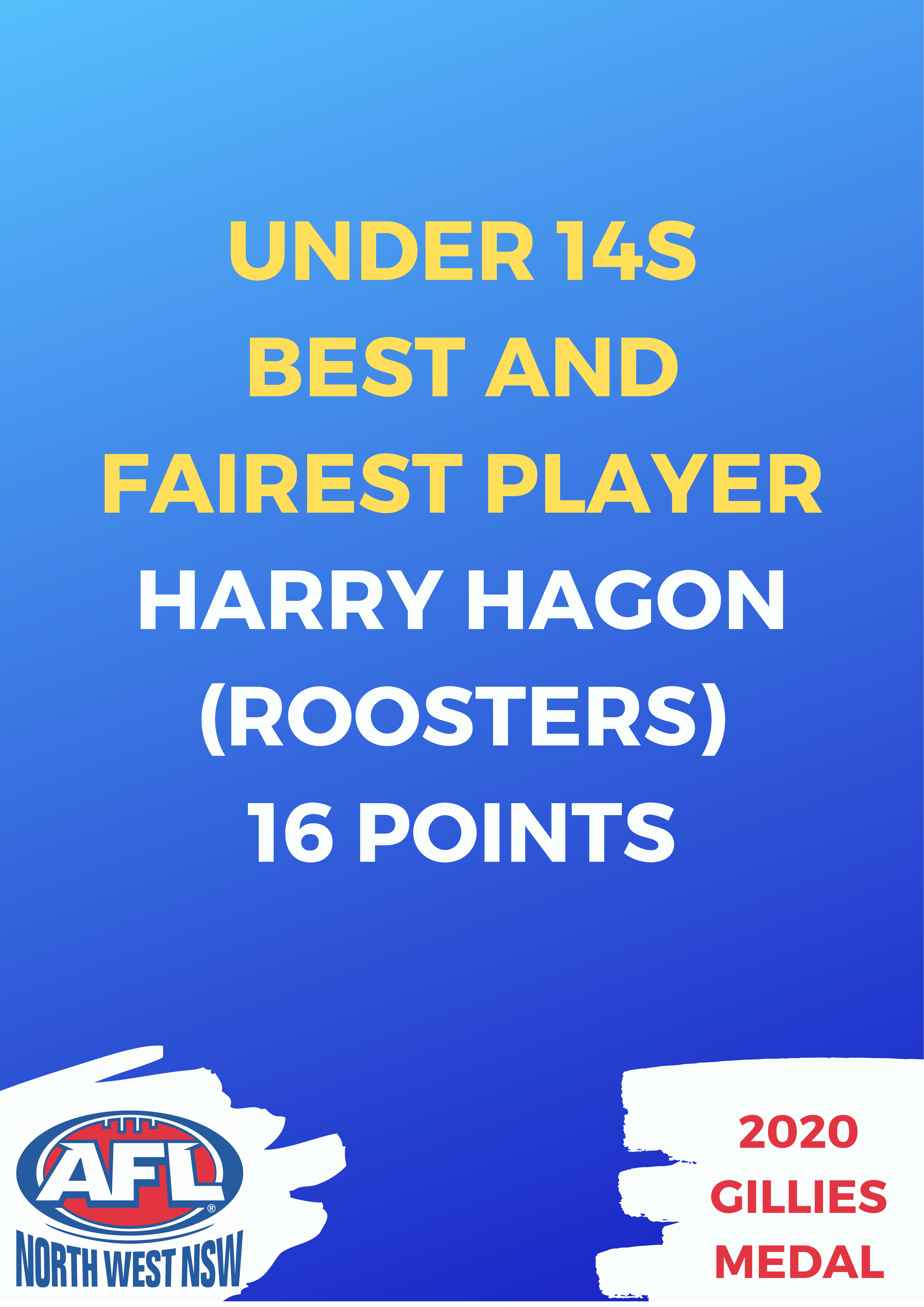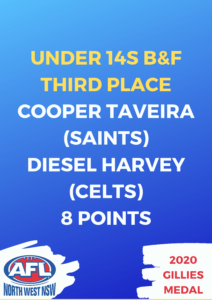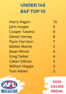 The under 14s best and fairest player was Tamworth’s Harry Hagon with 16 votes.