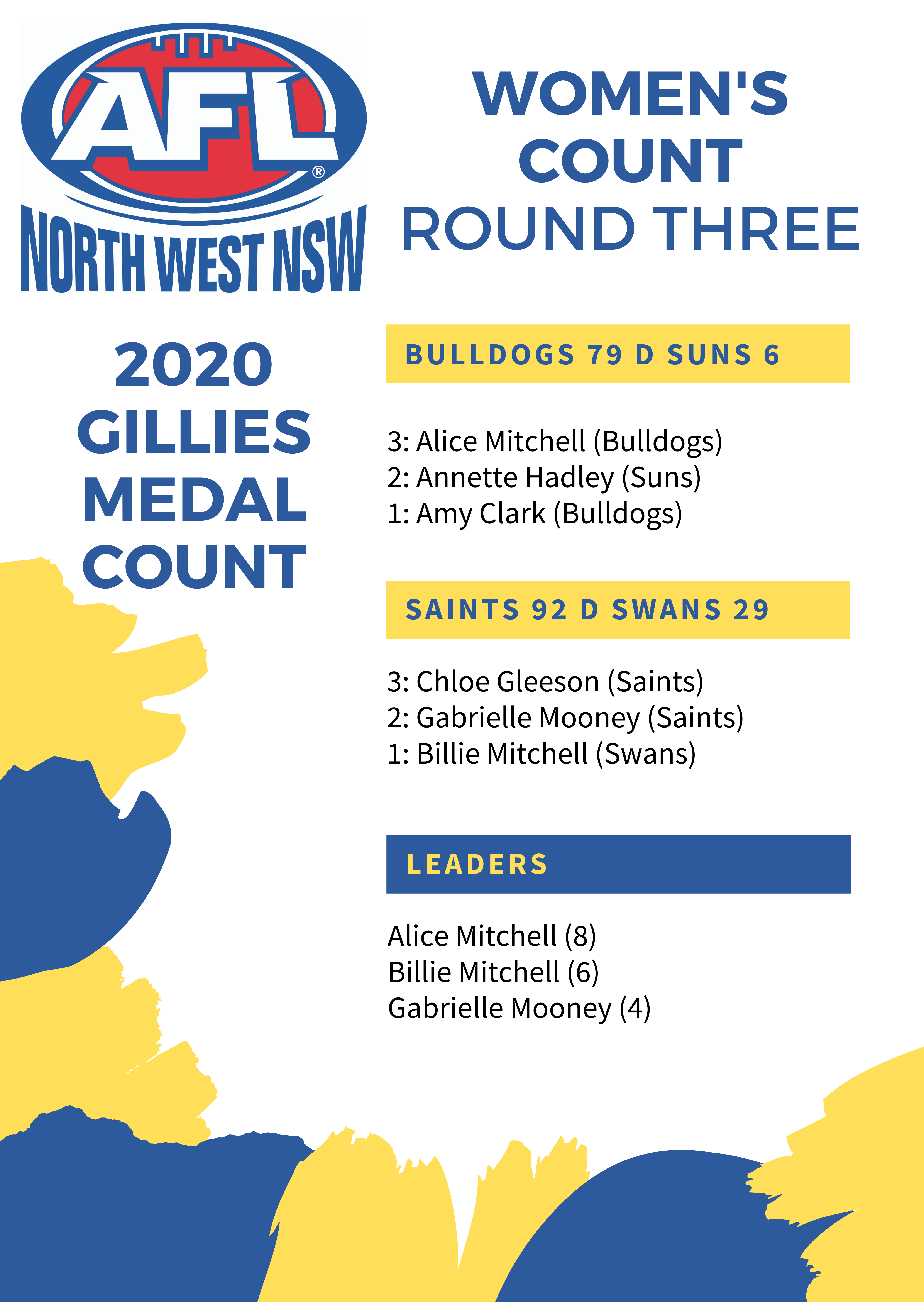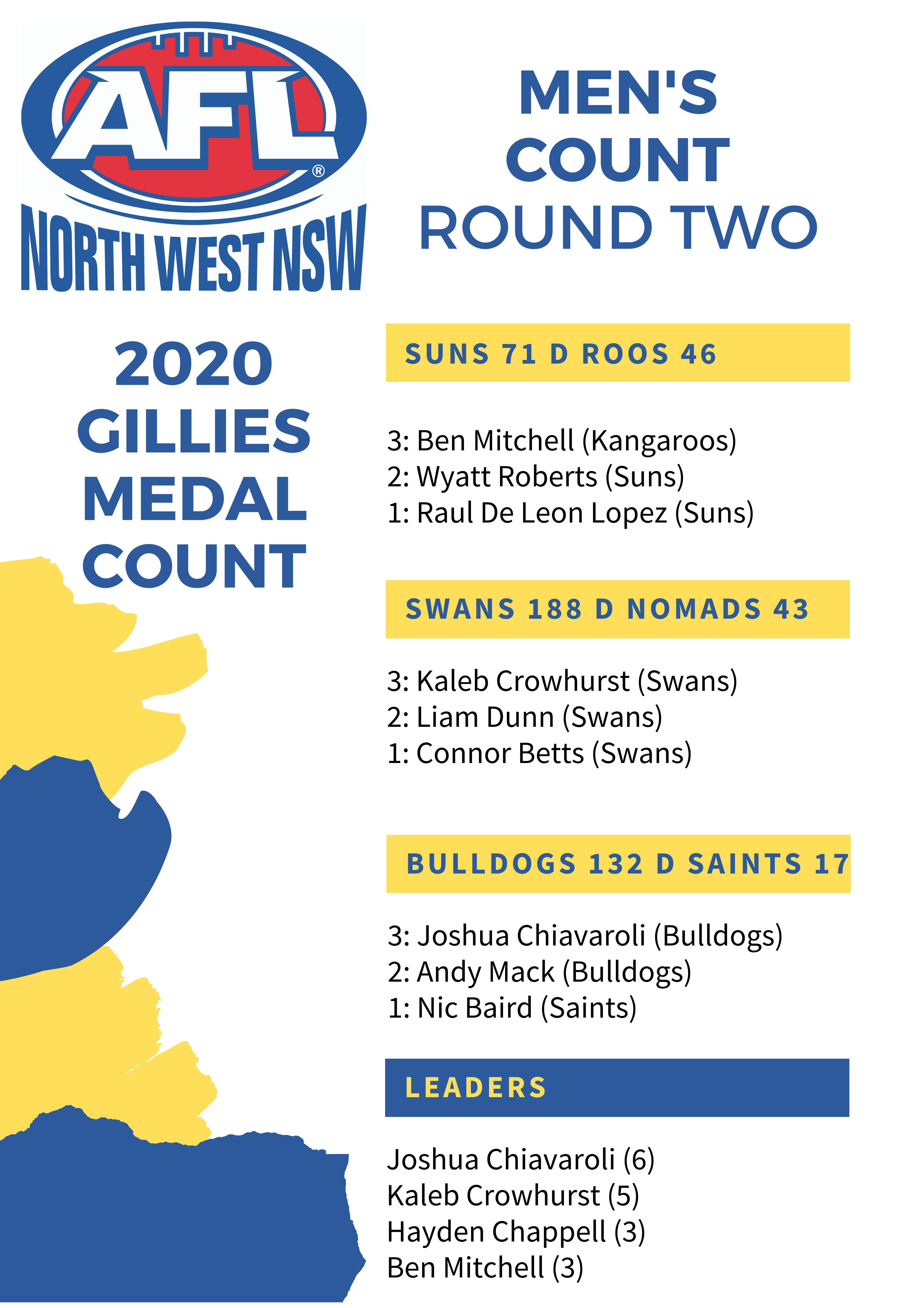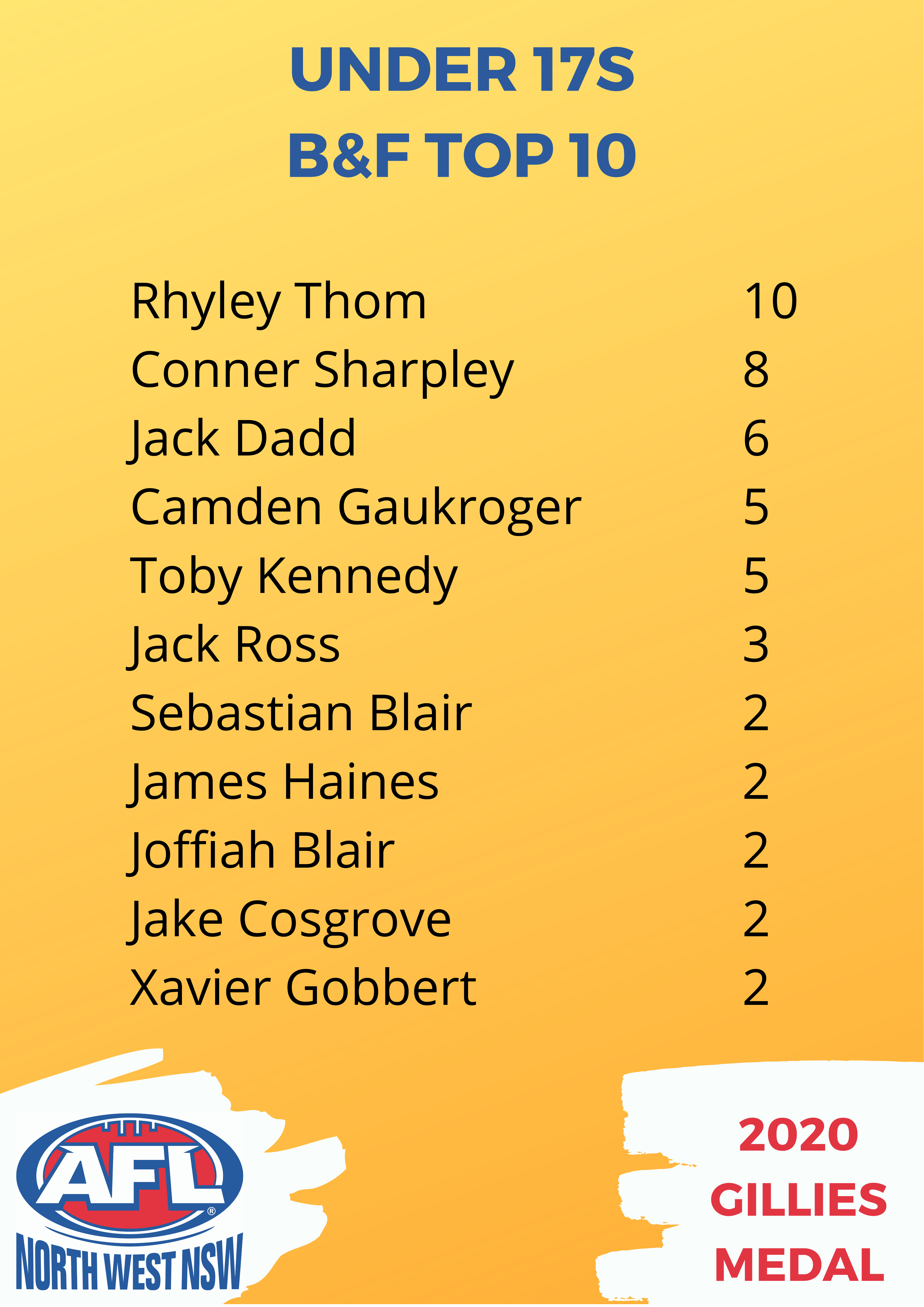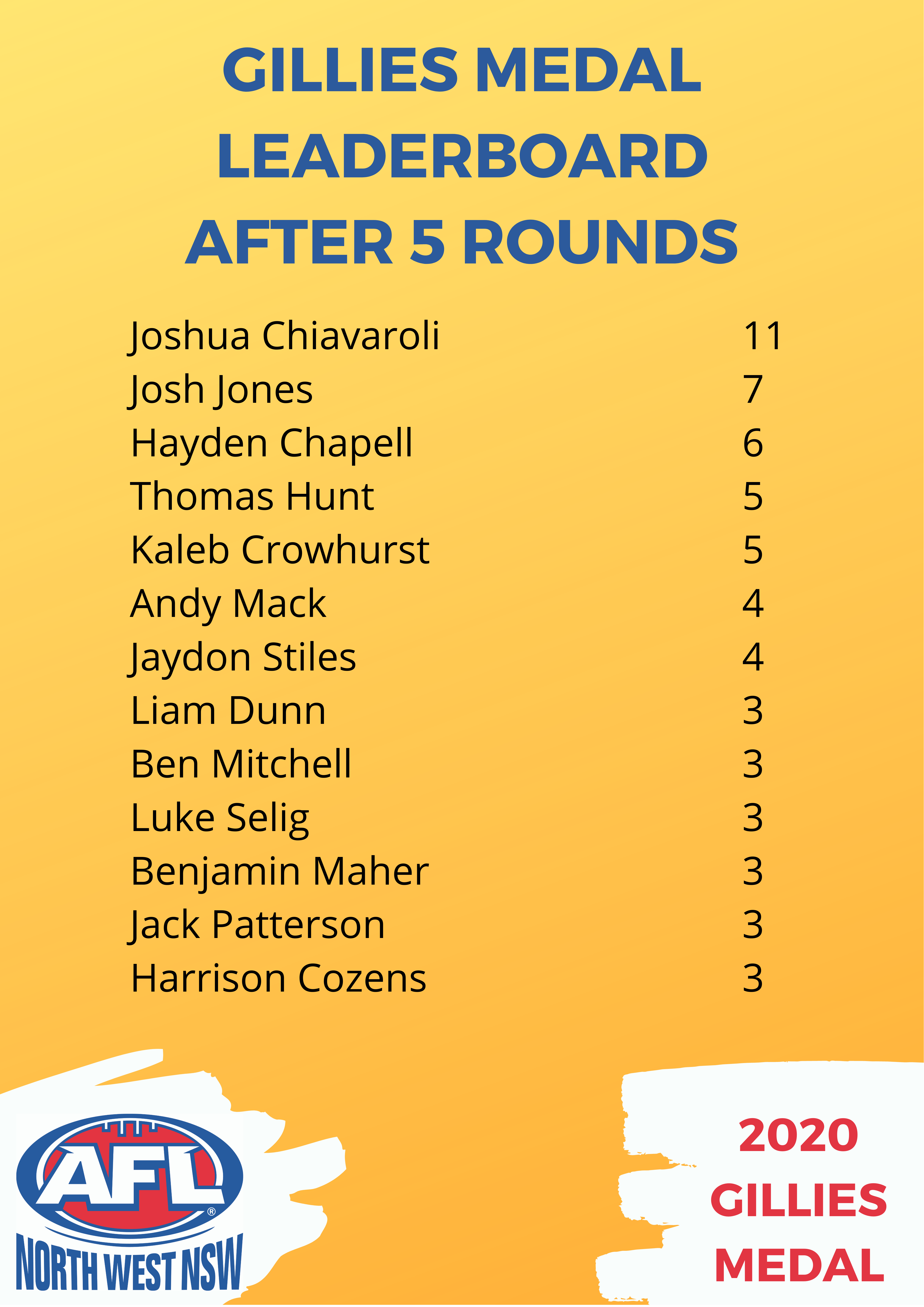 Swans duo Josh Jones, 12 points, and Kaleb Crowhurst, 11 points, finished third and fourth in the vote count.