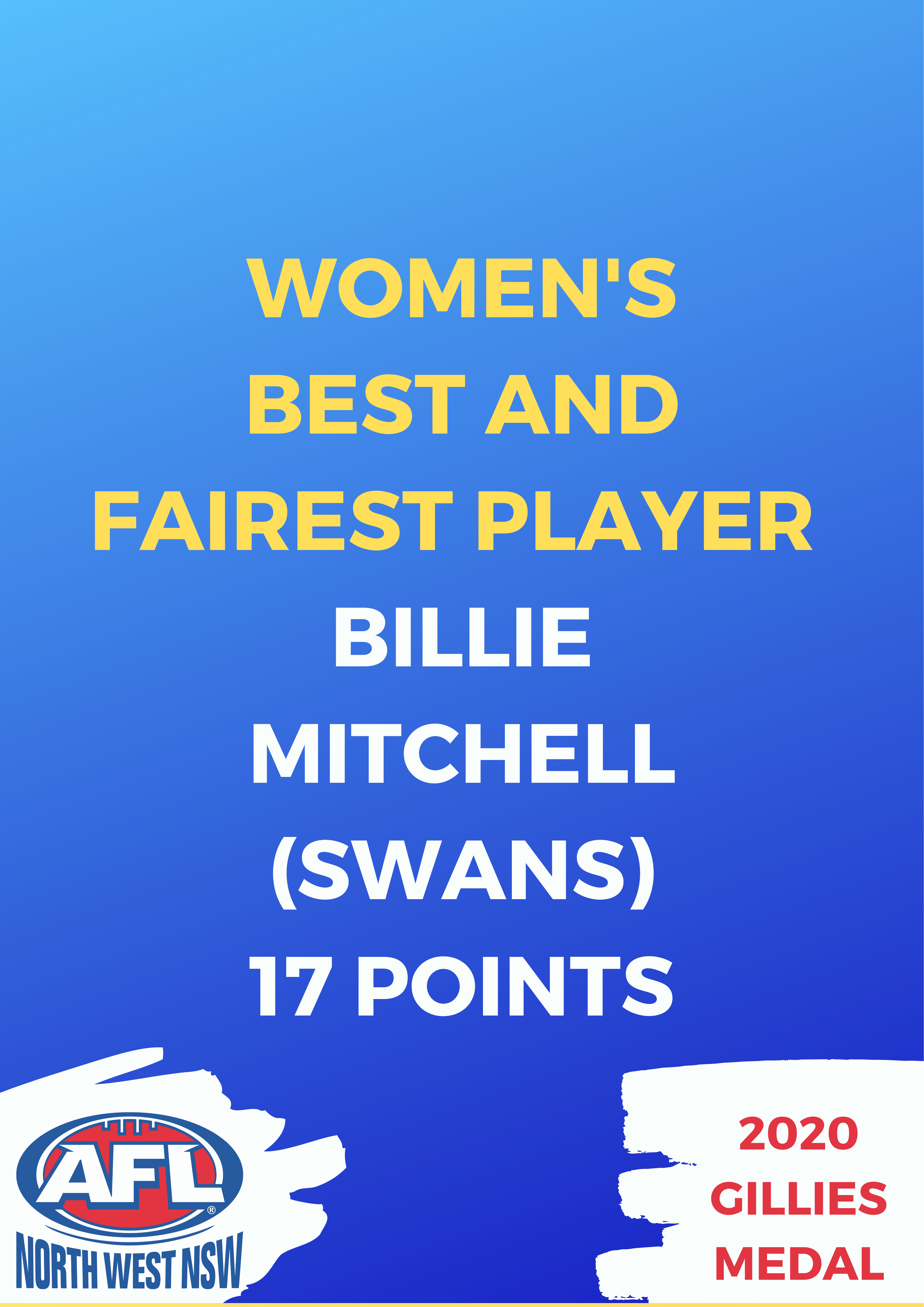 Meanwhile, Swans midfielder Billie Mitchell was crowned the women’s best and fairest player.