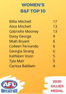 She claimed 17 votes throughout the year to finish ahead of Gunnedah’s Alice Mitchell and Inverell’s Gabrielle Mooney who both finished with 13 votes.