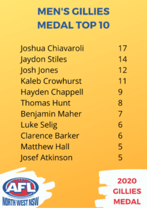 The Gillies Medal winner has been announced for 2020 with Gunnedah midfielder Josh Chiavaroli taking out the top gong.
