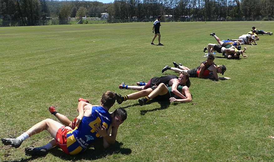 Saturday’s session focussed heavily on ball movement, particularly through handballs, stoppage work, and building the physical capacity to run and support at stoppages and to overlap with movement by handball.
