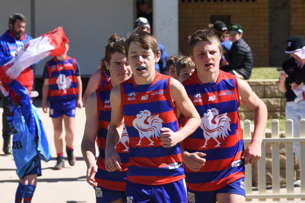 The Tamworth Roosters are led onto Varley Oval before Sunday’s Grand Final by captain Dane Cuddihy.