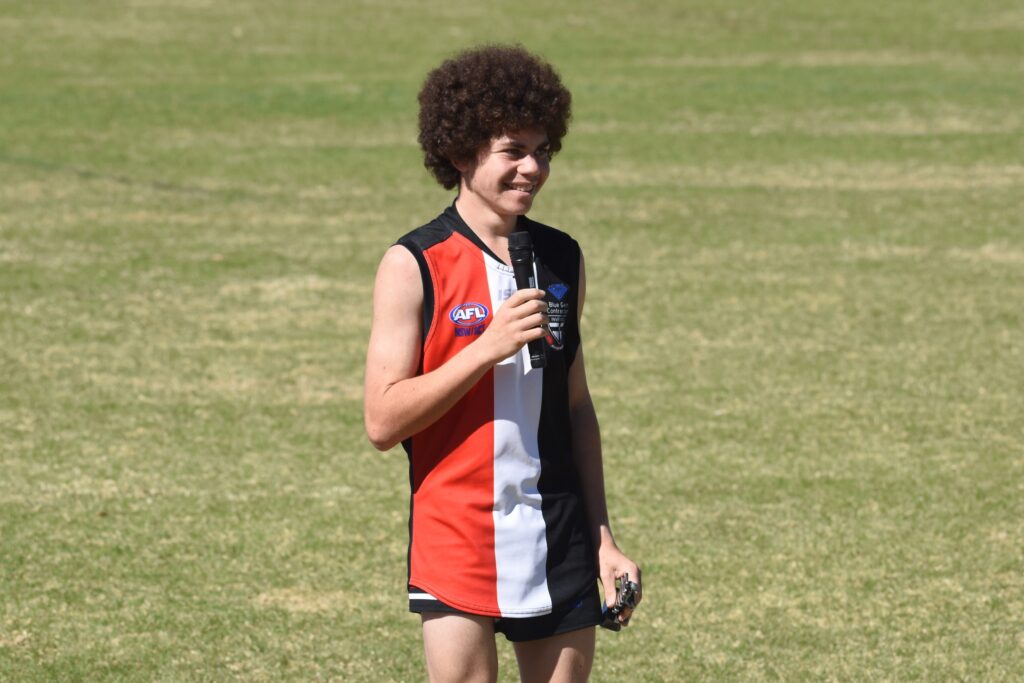 Zach Johnson accepts the Under 14 Best & Fairest award.