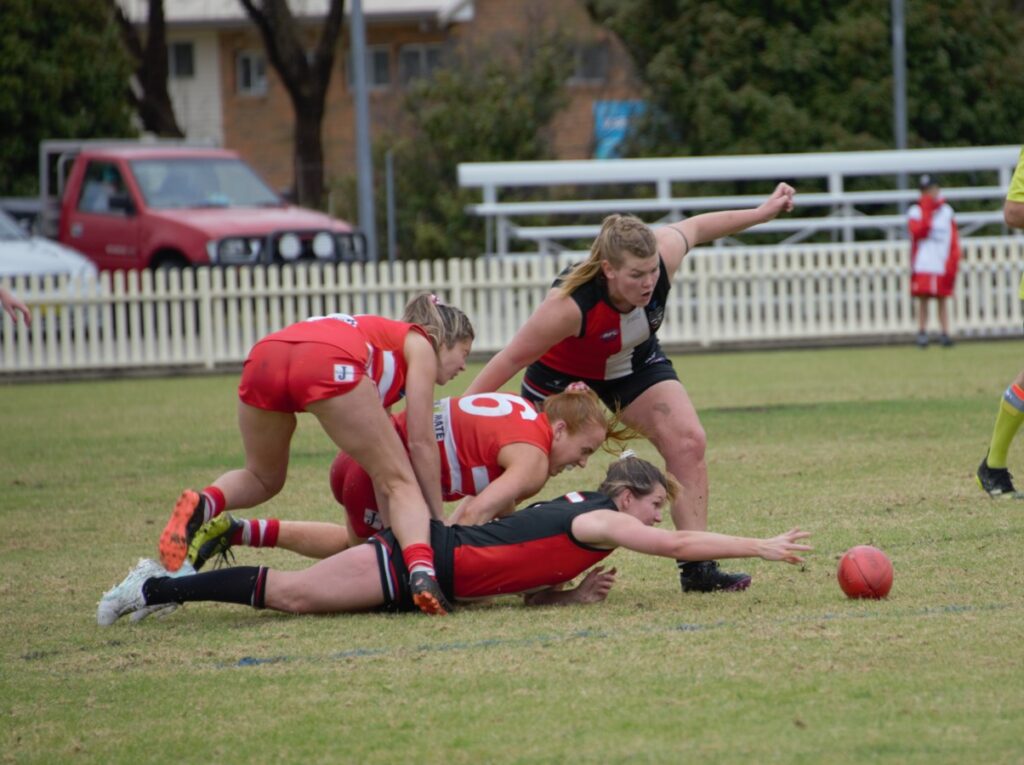 Inverell and the Tamworth Swans produced a desperate finish to the Women’s Preliminary Final. Photo: Sonia Lewis